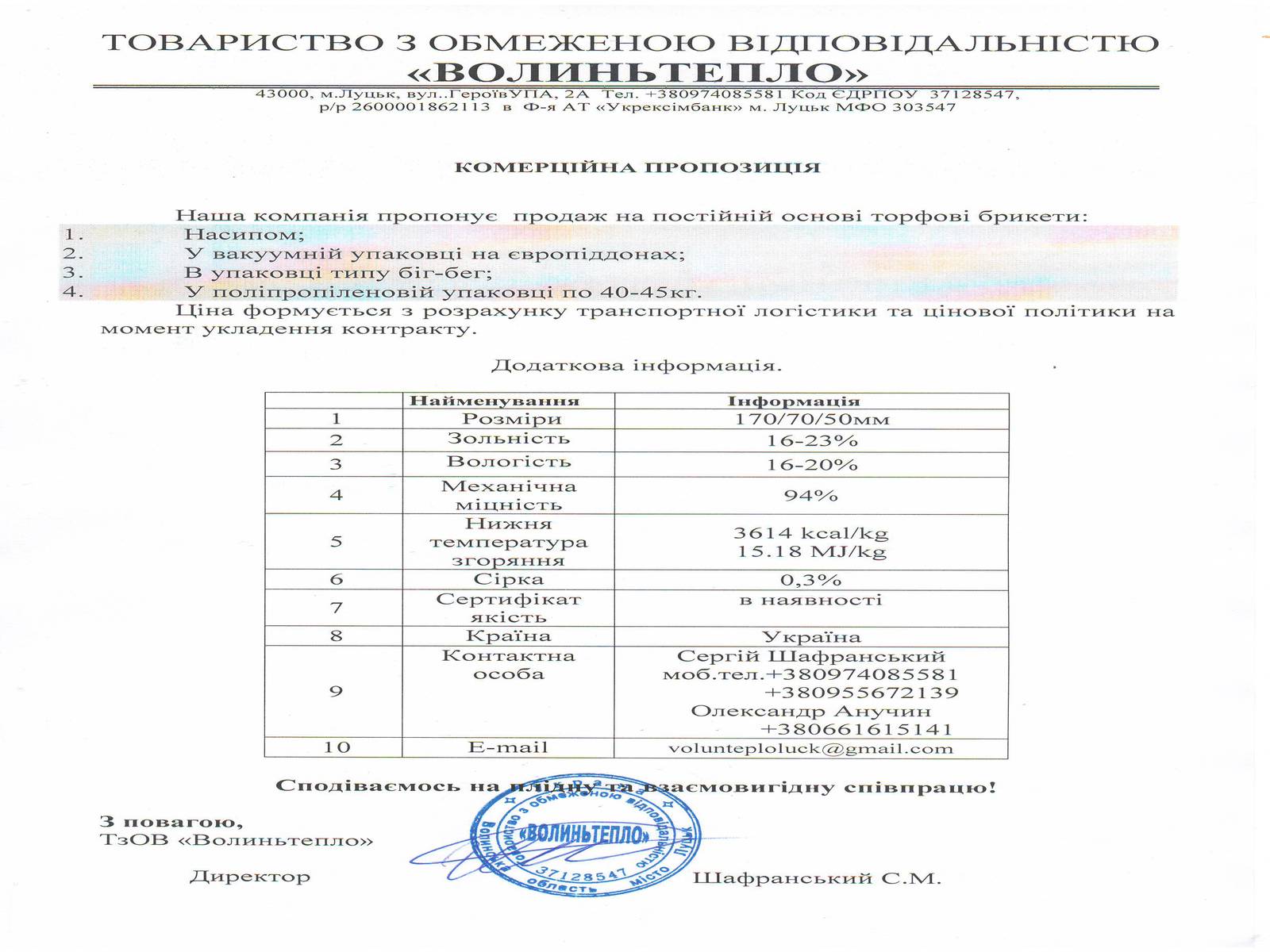 Пропозиції від Компания Волыньтепло